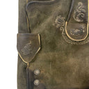 Die kurze Lederhose aus Leder ist besonders hochwertig verarbeitet. Schöne Stickereien und ein passender Gürtel machen diese Hose zu einem echten Hingucker. Die Hose wird vorn durch Knöpfe in Hirschhorn Optik geschlossen, die Bundweite kann hinten durch ein Lederband reguliert werden. Die Lederhose hat vorne zwei Hosentaschen und ist zusätzlich noch mit einer Hosentasche hinten und einer kleinen Seitentasche versehen. Ergänzen Sie unsere Trachtenhose vom deutschen Hersteller Maddox noch mit einer Trachtenbluse oder einem Shirt und perfekt ist das stylische Trachten Outfit Mädchen.