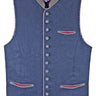 Traditionelle Trachtenweste für Herren in einem sehr schönen Blauton. Die hochwertige Weste aus einem angenehmen Leinenmaterial ist ein echter Hingucker für Ihr perfektes Trachtenoutfit. Farbakzente an den Taschen und am Kragen verleihen der Weste einen stylischen, modernen Look, ebenso der karierte Innenstoff.