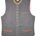 Traditionelle Trachtenweste für Herren in einem sehr schönen Grauton. Die hochwertige Weste aus einem angenehmen Leinenmaterial ist ein echter Hingucker für Ihr perfektes Trachtenoutfit. Farbakzente an den Taschen und am Kragen verleihen der Weste einen stylischen, modernen Look, ebenso der karierte Innenstoff.