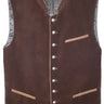 Die Front des Trachtengilets ist aus einem feinen braunen Samtmaterial gefertigt, im Rücken ist die Weste aus einem schwarzen Satinstoff hergestellt. Die exklusive Samtweste wird mit silberfarbenen Halbkugelknöpfen geschlossen und kann im Rücken durch einen Querriegel in der Weite reguliert werden. Die Trachtenweste wirkt sehr edel und dennoch traditionell und ergänzt perfekt Ihre Lederhose und Trachtenkleidung!