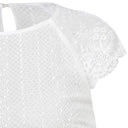 Romantische, exklusive Dirndlbluse für Damen von MarJo Trachten. Die hinreißende Dirndlbluse Klara-Dalida ist komplett aus Spitzenmaterial in Stretch-Qualität hergestellt, sie hat einen Rundhals-Ausschnitt und kurze, angeschnittene Ärmel. Die Abschlüsse sind mit zarten Spitzenborten besetzt und das florale Spitzenmuster ist perfekt als Ergänzung zu farbigen Miedern und Dirndln.