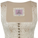 Das Dirndl „Griesstätt“ in elegantem Taupe aus dem Hause MarJo vereint klassische Trachtenkultur mit stilvoller Modernität. Dieses traumhafte Dirndl besticht auf den ersten Blick durch sein edel schimmerndes Mieder, das mit einem dezenten, aber wirkungsvollen Jacquardmuster versehen ist. Die strukturierte Optik verleiht dem Modell eine besondere Tiefe und Exklusivität. Der feminine, geradlinige Balconette-Ausschnitt unterstreicht das Dekolleté auf geschmackvolle Weise und sorgt für einen stilvollen, aber dennoch festlichen Auftritt – ganz gleich, ob beim Volksfest, auf Hochzeiten oder anderen feierlichen Anlässen.