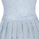 Der Rock ist knieumspielend und besitzt zwei seitliche Nahttaschen – ein funktionales Extra, das sich im Alltag als besonders nützlich erweist, ohne den femininen Look zu beeinträchtigen. Die abnehmbare Schürze aus schimmerndem Satin in der passenden Farbe unterstreicht die Leichtigkeit und Eleganz des Dirndls. Ob klassisch vorne gebunden oder individuell gestylt, sie verleiht dem Outfit einen festlichen Glanz und hebt das Babyblau zusätzlich hervor.