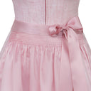 Der Rock ist knieumspielend und besitzt zwei seitliche Nahttaschen – ein funktionales Extra, das sich im Alltag als besonders nützlich erweist, ohne den femininen Look zu beeinträchtigen. Die abnehmbare Schürze aus schimmerndem Satin in der passenden Farbe unterstreicht die Leichtigkeit und Eleganz des Dirndls. Ob klassisch vorne gebunden oder individuell gestylt, sie verleiht dem Outfit einen festlichen Glanz und hebt das Puderrosa zusätzlich hervor.