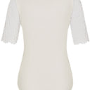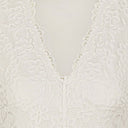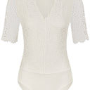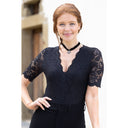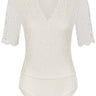 Der Body „Hanna“ ist ein echter Hingucker für jede Gelegenheit! Mit seinem tiefen V-Ausschnitt und der zarten floralen Spitze setzt er Ihr Dekolleté stilvoll in Szene, während die halbarmen Spitzenärmel einen Hauch von Vintage-Romantik verleihen.