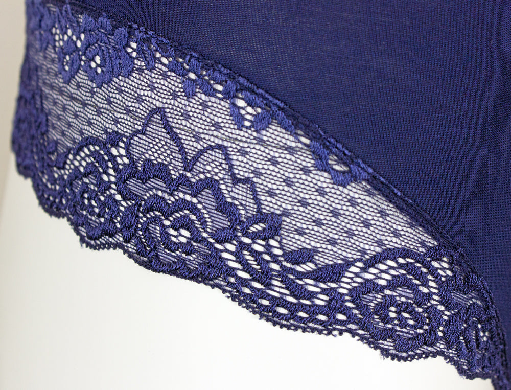 Exclusiver Komfort vereint mit wunderschöner Spitze im floralen Design erwartet Sie mit diesem wunderschönen Stringhipster im wunderschönen sehr edel wirkenden Farbton Lapis. Aus weichem Modal überzeugt der Slip in Sachen Tragekomfort ebenso, wie mit seiner reizvollen und verführerischen Optik.