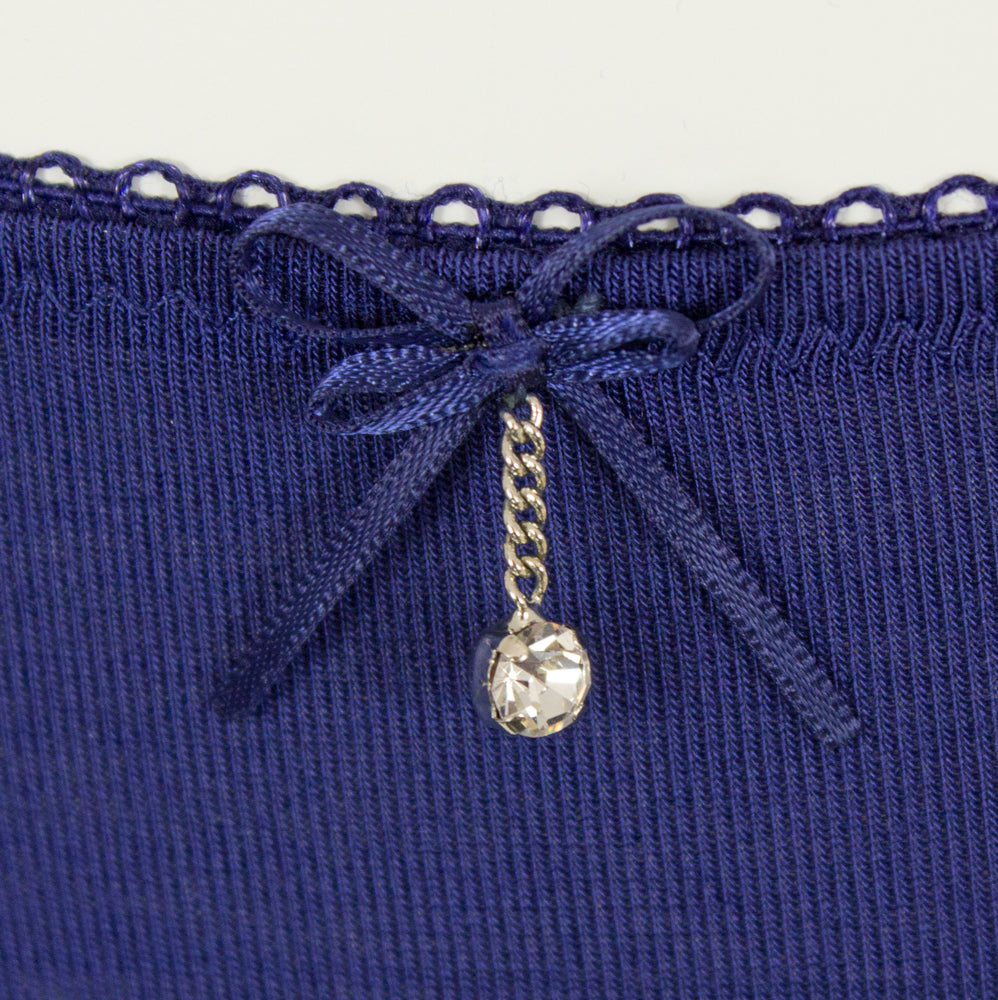 Rund um die Beinausschnitte ist die feine Spitze eingearbeitet und vorne gibt kleine Zierschliefe mit einem funkelndem Schmuckelement dem sexy Slip den letzten Schliff. Durch die flachen Nähte, ist der Stringhipster besonders angenehm zu tragen.