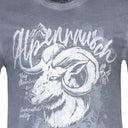Ausgefallenes T-Shirt mit großem Printmotiv. Das Herren-T-Shirt Torben vom deutschen Hersteller MarJo ist nicht nur farblich ein toller Hingucker. Auch der Print mit großem Steinbock-Motiv und dem markanten Schriftzug Alpenrausch zieht alle Blicke auf sich. Das moderne T-Shirt ist aus weicher Baumwollqualität und eine tolle Ergänzung zu Jeans oder Lederhosen und einem Pullover oder Janker.