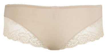 Exclusiver Komfort vereint mit wunderschöner Spitze im floralen Design erwartet Sie mit diesem wunderschönen Stringhipster im schmeichelnden Farbton Latte Macchiato. Aus weichem Modal überzeugt der Slip in Sachen Tragekomfort ebenso, wie mit seiner reizvollen und verführerischen Optik.