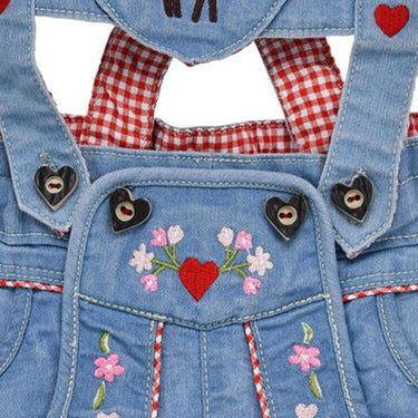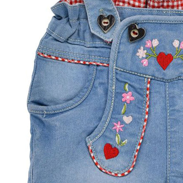 Der Beinabschluss ist mit Bündchen und Knöpfen ausgestattet, die für eine individuelle Anpassung sorgen und gleichzeitig den typischen Trachten-Look vervollständigen. Ob für einen entspannten Tag im Garten, beim Ausflug oder im Alltag – mit dieser Latzshort macht Ihr Mädchen immer eine gute Figur. Sie kombiniert coole, moderne Elemente mit traditionellen Trachten-Details und ist somit der ideale Begleiter für alle, die den rustikalen Charme der Tracht lieben, ohne auf Komfort und Stil zu verzichten.