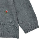 Ein besonderes Highlight dieser Strickjacke ist die Knopfleiste, die mit herzförmigen Trachtenknöpfen verziert ist. Diese süßen Knöpfe verleihen der Jacke eine verspielte und zugleich elegante Note, die perfekt zu traditioneller Trachtenmode passt. Die Knopfleiste sorgt dafür, dass die Strickjacke bequem und schnell an- und ausgezogen werden kann, was besonders praktisch für Eltern von kleinen Kindern ist.