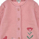 Diese zarte, rosa Strickjacke für Babys und kleine Mädchen von BONDI Kidswear besticht durch ihre liebevollen Details. Die Stickereien einer Blume und eines kleinen Vogels auf der Vorderseite verleihen ihr einen verspielten Touch. Mit einer Knopfleiste versehen, ist sie einfach an- und auszuziehen, während das weiche Material für wohligen Komfort sorgt. Perfekt für kühlere Tage und ideal, um jedes Outfit stilvoll zu ergänzen.