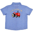 Dieses coole Kinder Kurzarmhemd begeistert sowohl die großen, wie auch kleinen Trachtenfans. Das Shirt ist aus hochwertiger, weicher Baumwolle gefertigt und vorn mit zwei Hirschköpfen und einer durchgehenden Knopfleiste aus Trachtenknöpfen designt. Das blau weiße Karomuster gibt dem kurzärmeligen Kindershirt den richtigen Pfiff und runden das Gesamtbild perfekt ab. Verziert ist der Rücken des Kinderhemdes mit der Aufschrift Lausbub und einem wattierten Traktor Aufnäher. Die perfekte Kombination zur Lederhose, aber auch im Alltag zur Jeans.
