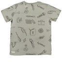 Dieses coole, steingraue Kinder Kurzarmshirt wird begeistert sowohl die großen, wie auch kleinen Traktorfans. Das T-Shirt ist aus hochwertiger, weicher Baumwollware gefertigt und vorn mit einem Traktor Stickerei und Alloverdruck 'Werkzeug' designt. Das sommerliche Shirt mit den kurzen Ärmeln ist die perfekte Kombination zu Jeans und auch zur Lederhose.