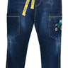 Die Kinderjeans hat zwei große aufgesetzte Taschen, von denen eine mit einem detailreichen Traktor bestickt ist. Durch den Bindegürtel lässt sich die Bundweite ganz individuell anpassen und ist so für Ihren Jungen besonders angenehm und bequem.