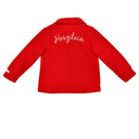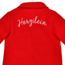 Die peppige, knallrote Fleecejacke für Mädchen ist ein echter Hingucker. Die kuschelig weiche Jacke ist mit einem Bubikragen und aufgesetzten Herztaschen mit niedlicher Stickerei ausgestattet. Geschlossen wird Trachtenjacke vorne mit herzförmigen Kunststoffknöpfen in Hirschhornoptik.