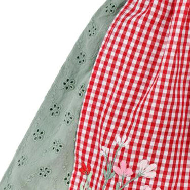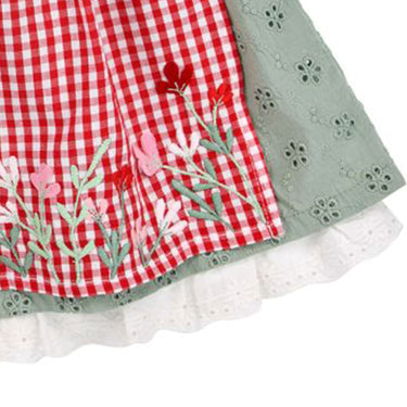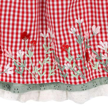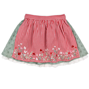 Die abnehmbare Schürze aus trachtigem Karo ist ein weiteres Highlight des Rocks. Sie ist mit einer aufwendigen, bestickten Blumenbordüre verziert und setzt einen besonderen Akzent. Die Schürze lässt sich einfach abnehmen, sodass der Rock auch ohne diesen zusätzlichen Hingucker getragen werden kann, wenn es mal etwas schlichter sein soll.