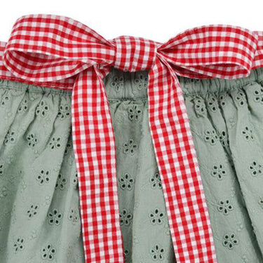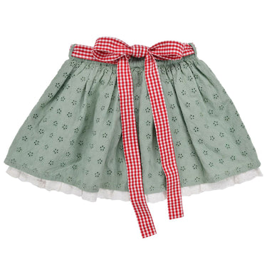 Mit seinem leichten, schwingenden Schnitt sorgt der Rock für eine wunderbare Bewegungsfreiheit und einen femininen Look. Die schönen Farben und das tolle Design machen ihn zu einem echten Hingucker und sorgen dafür, dass das Mädchen bei jedem Anlass stilvoll gekleidet ist. Der Rock ist mit einer filigranen Lochstickerei verziert, die dem Design eine verspielte, detailreiche Note verleiht. Das gefütterte Innenfutter sorgt dafür, dass der Rock angenehm zu tragen ist, ohne unangenehm zu kratzen oder zu scheuern.