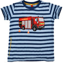 BONDI T-Shirt "Feuerwehrauto" für Jungen 33122 | Blau geringelt
