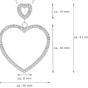 Die Kette ist ca. 80 cm lang und kann mit einem Verlängerungskettchen um 5 cm verlängert werden. Die Damenkette ist aus hochwertigem Edelstahl gefertigt. Der Anhänger ist einem großen und einem kleinen Herz gestaltet. Die durchbrochenen Herzen sind am Rand mit funkelnden Zirkonia besetzt.
