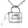 Die zarte Kette für Damen ist aus 925 Sterling Silber gefertigt und als Anhänger sind ein kleines Vorhängeschloss mit dem Schriftzug Love forever und ein kleiner Schlüssel dazu abgebracht. Das Schmuckstück kann in den Weiten ca. 39 cm und ca. 42 cm geschlossen werden und bringt trotz seiner Schlichtheit eine klare Liebesbotschaft rüber.