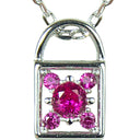 LUISIA Filigrane Damen Halskette mit Strass Vorhängeschloss Pink - 925 Silber Schmuck mit Zirkonia