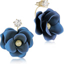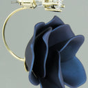 LUISIA Front Back Ohrringe Jarla mit Blumen - 16 Karat vergoldet Dunkelblau