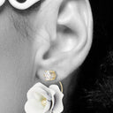 LUISIA Front Back Ohrringe Jarla mit Blumen - 16 Karat vergoldet Weiß