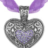 Das Band ist aus einem schönen, leicht glänzenden Chiffon- und Satinmaterial hergestellt, der Herz Anhänger ist mit Ornamenten verziert. Das Herzinnere ist mit farblich zum Band abgestimmten Swarovski Elementen in Herzform besetzt. Durch einen Magnet Klappverschluss lässt sich der Anhänger ganz leicht auch an anderen Ketten und Halstüchern befestigen. Die Anhängerrückseite zieren viele kleine süße Herzchen. Die Halskette wird mit einem Karabinerhaken geschlossen und besitzt noch ein kleines Verlängerungskettchen.