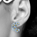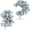 LUISIA Halb Creolen Ohrstecker Mia mit Blüten - 16 Karat vergoldet Hellblau