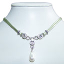 Durch das satinähnlich glänzende Kettenband ist die Halskette besonders angenehm zu tragen. Zu einem Y angeordnet funkeln dem Betrachter drei traumhaft schöne Swarovski Steine entgegen. Die tropfenförmige Perle rundet das harmonische Bild ab und macht das Collier zu etwas ganz Besonderem. Geschlossen wird die Kette mit einem Karabinerhaken. Mit einem Verlängerungskettchen bestimmen Sie die gewünschte Länge.