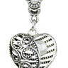 Das Kettenband ist als seidig glänzendes Satinband unterlegt mit einer Satinkordel gestaltet. Der Clou ist jedoch der bezaubernde, ornamentverzierte Herzanhänger. Er ist zur Mitte hin halb geöffnet und birgt eine cremig weiße Perle.