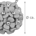 Die Damen Kette hat ein 16 Karat vergoldetes Ankerkettenband und lässt sich in der individuellen Länge von 37 bis 43 cm tragen. Als Kettenanhänger ist eine Halbkugel angebracht, die mit bezaubernden kleinen, duftigen Blüten besetzt ist.  Die Blütenblätter sind je nach Farbe in matt gehalten oder mit einem zart metallischen Glanz versehen sind.