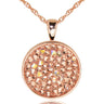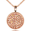 Der Anhänger des Damenschmuckes ist mit einer großen, runden Einfassung versehen, die viele kleine Kristalle von Swarovski ziert. Die Damenkette wird mit einem Karabinerhaken geschlossen.