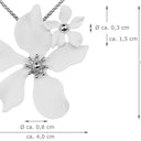 Die Damen Kette hat ein 16 Karat vergoldetes Ankerkettenband und lässt sich in der individuellen Länge von 46 bis 52 cm tragen. Als Kettenanhänger sind zwei hübsche Blumen angebracht, deren Blütenblätter je nach Farbe in matt gehalten oder mit einem zart metallischen Glanz versehen sind.