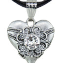 Der Damen Halsschmuck besteht aus einem doppelreihigen Kettenband in Satinoptik und einem ca. 2,5 cm großem Herzanhänger. Der Herzanhänger ist in Altsilber Optik gehalten und mit Bändern und Ornamenten verziert. Den Mittelpunkt bildet der ca. 0,8 cm große runde Swarovski Kristall, der farblich auf das Band abgestimmt ist. Durch seinen Präzissionsschliff hat der wunderschöne Schmuckstein einen einzigartigen und atemberaubenden Glanz und funkelt herrlich im Licht. Bitte beachten Sie, dass es sich nicht um eine Kette der Firma Swarovski handelt, es wurde jedoch Swarovski Strass verarbeitet, der einfach am schönsten funkelt und glänzt.