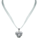 Der Damen Halsschmuck besteht aus einem doppelreihigen Kettenband in Satinoptik und einem ca. 2,5 cm großem Herzanhänger. Der Herzanhänger ist in Altsilber Optik gehalten und mit Bändern und Ornamenten verziert. Den Mittelpunkt bildet der ca. 0,8 cm große runde Swarovski Kristall, der farblich auf das Band abgestimmt ist. Durch seinen Präzissionsschliff hat der wunderschöne Schmuckstein einen einzigartigen und atemberaubenden Glanz und funkelt herrlich im Licht. Bitte beachten Sie, dass es sich nicht um eine Kette der Firma Swarovski handelt, es wurde jedoch Swarovski Strass verarbeitet, der einfach am schönsten funkelt und glänzt.