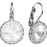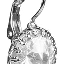 Die eleganten Ohrringe Vivana von LUISIA haben einen runden Anhänger mit einem großen glitzernden Svarowski Stein. Viele kleine filigrane Metallzacken umschließen den funkelnden Schmuckstein wie eine Krone. Geschlossen wird der silberne Ohrschmuck mit einem Bügelverschluss. So lassen sich die Ohrhänger schnell und leicht einsetzen.