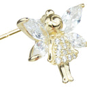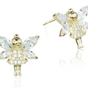 Die Ohrstecker sind hochwertig aus 925 Sterling Silber gefertigt und wurden vergoldet. Die kleine Fee hat ein mit glänzendem Strass verziertes Kleid. Die Flügel sind mit funkelnden Zirkonia besetzt. Die Ohrstopper sind aus Gummi (Kunststoff).