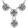 Die wunderschöne Perlenkette hat vier filigrane Blume Ornamente mit kleinem Edelweiß und Perlchen in der Mitte als Anhänger. Geschlossen wird der Halsschmuck mit einem Karabinerhaken. Geliefert wird das bezaubernde Schmuckstück in einem Schmuckkästchen von LUISIA.