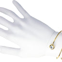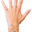Der Damenschmuck ist mit zwei 9 mm großen Kristallen von Swarovski verziert, läuft spiralförmig und kann leicht gebogen werden, wodurch er sich jedem Handgelenk anpasst.