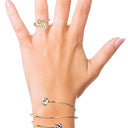 Der Damenschmuck ist mit zwei 9 mm großen Kristallen von Swarovski verziert, läuft spiralförmig und kann leicht gebogen werden, wodurch er sich jedem Handgelenk anpasst.