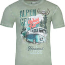 Ausgefallenes T-Shirt mit großem Printmotiv. Das Herren-T-Shirt Silas vom deutschen Hersteller MarJo ist nicht nur farblich ein toller Hingucker. Auch der Print mit großem Alpen-Motiv und Schriftzug zieht alle Blicke auf sich. Das moderne T-Shirt ist aus weicher Baumwollqualität und eine tolle Ergänzung zu Jeans oder Lederhosen und einem Pullover oder Janker.
