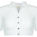 Die Bluse ist aus einem leicht transparenten Material mit Blumen Stickereien hergestellt. Der eingearbeitete Gummizug am Blusenabschluss verleiht der Trachtenbluse einen perfekten Sitz und eine gute Passform. Geschlossen wird die Damenbluse mit silberfarbenen, in Blumenform verzierten Metallknöpfen.