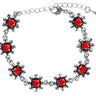 Silbernes Strass Armband mit Blüten - Rot