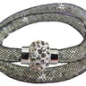 Bei diesen wunderschönen zweireihigen Armbändern könnte man glauben, dass sie mit Sternenstaub aus entfernten Galaxien gefüllt sind! In Wahrheit glitzern Ihnen hier aber farbige Mini Kristalle entgegen, wodurch der Schmuck besonders klar funkelt. Die Schmucksteine sind mit einem Nylon-Schlauch in Netzoptik umwickelt.