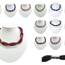 Bei diesen wunderschönen zweireihigen gedrehten Colliers könnte man glauben, dass sie mit Sternenstaub aus entfernten Galaxien gefüllt sind! In Wahrheit glitzern Ihnen hier aber farbige Mini Kristalle entgegen, wodurch der Schmuck besonders klar funkelt. Die Schmucksteine sind mit einem Nylon-Schlauch in Netzoptik umwickelt.