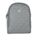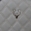 Gefertigt aus angenehm weichem Kunstleder mit einer eleganten Veloursleder-Optik, zeigt sich „Emma“ in einem klassischen Rautenmuster auf der Vorderseite. Das absolute Highlight: die detailreiche Hirschkopf-Applikation aus silberfarbenem Metall – ein Symbol für alpine Eleganz.