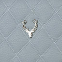Gefertigt aus angenehm weichem Kunstleder mit einer eleganten Veloursleder-Optik, zeigt sich „Emma“ in einem klassischen Rautenmuster auf der Vorderseite. Das absolute Highlight: die detailreiche Hirschkopf-Applikation aus silberfarbenem Metall – ein Symbol für alpine Eleganz.