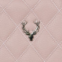 Gefertigt aus angenehm weichem Kunstleder mit einer eleganten Veloursleder-Optik, zeigt sich „Emma“ in einem klassischen Rautenmuster auf der Vorderseite. Das absolute Highlight: die detailreiche Hirschkopf-Applikation aus silberfarbenem Metall – ein Symbol für alpine Eleganz.